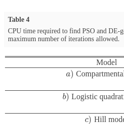| $a)$ Compartmental model | PSO(20,200) | 0.4 |