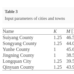 According to Statistical Yearbook of Lishui City of 2015 and energy consumption statistics of each county of Lishui city (Mátyás, 1998), input parameters are shown in Table 3.