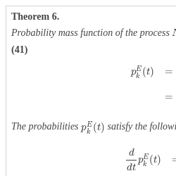 The probabilities ${p_{k}^{E}}(t)$ satisfy the following system of difference-differential equations: