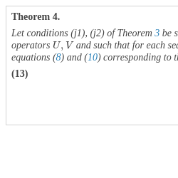 First, consider the deterministic analogs of equations (1) and (2). Let $U,V$ be fixed operators belonging to $\mathcal{L}(W)$. In what follows, we need the following statements.