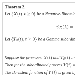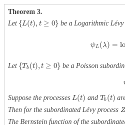 where the Laplace exponent is a Bernstein function defined by the random variable $L(1)$ as follows: