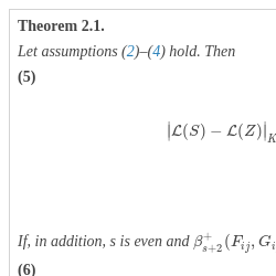 If, in addition, s is even and ${\beta _{s+2}^{+}}({F_{ij}},{G_{ij}})+{\beta _{s+2}^{-}}({F_{ij}},{G_{ij}})<\infty $, then