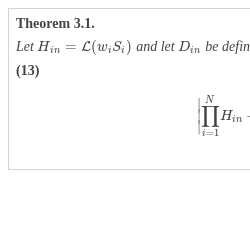 \[\begin{aligned}\hspace{-0.1667em}\hspace{-0.1667em}\hspace{-0.1667em}{\big|\mathcal{L}(S)-\mathcal{L}(Z)\big|_{K}}& \leqslant C(N,s)\frac{\,{\max _{j}}{w_{j}}}{\,{\min _{j}}{w_{j}}}{\Bigg({\sum \limits_{i=1}^{N}}{\sum \limits_{l=1}^{{n_{i}}}}{u_{il}}\Bigg)}^{-1/2}{\prod \limits_{l=1}^{N}}\Bigg(1+{\sum \limits_{k=1}^{{n_{l}}}}{\sigma _{lk}^{2}}/{\sum \limits_{k=1}^{{n_{l}}}}{u_{lk}}\Bigg)\\{} & \hspace{1em}\times {\sum \limits_{i=1}^{N}}{\sum \limits_{j=1}^{{n_{i}}}}\big[{\beta _{s+1}^{+}}({F_{ij}},{G_{ij}})+{\beta _{s+1}^{-}}({F_{ij}},{G_{ij}})\big]{\Bigg({\sum \limits_{k=1}^{{n_{i}}}}{u_{ik}}\Bigg)}^{-s/2}.\end{aligned}\]