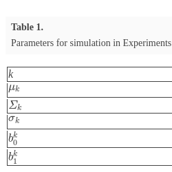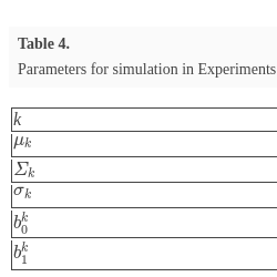 where ${X}^{k}\sim N({\mu _{k}},{\varSigma _{k}^{2}})$ and Y are the observed regressor and response, κ is the unobserved number of components, ${\varepsilon }^{k}$ is the regression error. The error ${\varepsilon }^{k}$ has zero mean and variance ${\sigma _{k}^{2}}$.