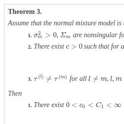 where ${\mu _{m}}\in {\mathbb{R}}^{d}$ is the mean of X for the m-th component and ${\varSigma _{m}}\in {\mathbb{R}}^{d\times d}$ is its covariance matrix. All the parameters are usually unknown. So, in this case the unknown nusance parameters are