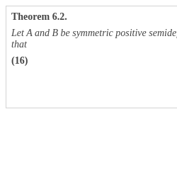 for various Îť. For $\lambda ={\nu _{k}}={\nu _{{k_{\ast }}}}$, the inequality ${\lambda _{j}}-{\nu _{k}}{\mu _{j}}\ge 0$ holds true for all $j\ge {k_{\ast }}$, so the matrix $D({\nu _{k}})$ is positive semidefinite. For $\lambda ={\nu _{{k}^{\ast }+1}}$, the inequality ${\lambda _{j}}-{\nu _{{k}^{\ast }+1}}{\mu _{j}}\le 0$ holds true for all ${k_{\ast }}\le j\le {k}^{\ast }+1$, so there exists a ${k}^{\ast }-{k_{\ast }}+2$-dimensional subspace of ${\mathbb{R}}^{n+d-{k_{\ast }}+1}$ where the quadratic form $D({\nu _{{k}^{\ast }+1}})$ is negative semidefinite. For $\lambda <{\nu _{{k}^{\ast }+1}}$, the inequality ${\lambda _{j}}-\lambda {\mu _{j}}>0$ holds true for all ${k}^{\ast }+1\le j\le n+d$. Therefore, there exists an $n+d-{k}^{\ast }$-dimensional subspace of ${\mathbb{R}}^{n+d-{k_{\ast }}+1}$ where the quadratic form $D(\lambda )$ is positive definite. According to the proof of Sylvesterâs law of inertia, there is no subspace of dimension ${k}^{\ast }-{k_{\ast }}+2=(n+d-{k_{\ast }}+1)-(n+d-{k}^{\ast })+1$ where the quadratic form $D(\lambda )$ is negative semidefinite. Thus, ${\nu _{{k}^{\ast }+1}}$ is the least number such that there exists a ${k}^{\ast }-{k_{\ast }}+2$-dimensional subspace where the quadratic form $D(\lambda )$ is negative semidefinite.Similarly to the chain of equalities in the proof of Proposition 7.4,