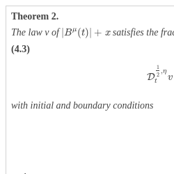 have a unique solution given by the density law of an inverse to a stable subordinator, say ${L_{t}}$ (see for example [2, formulas 3.4 and 3.5]). It is well known that ${L_{t}}$ (with ${L_{0}}=0$) is identical in law to a folded Brownian motion $|{B_{t}}|$ (with ${B_{0}}=0$), that is, u is the unique solution to the problem