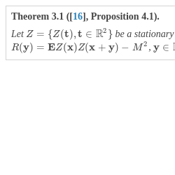 Taylor, M.: Random fields: stationarity, ergodicity, and spectral behavior, http://www.unc.edu/math/Faculty/met/rndfcn.pdf